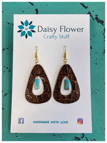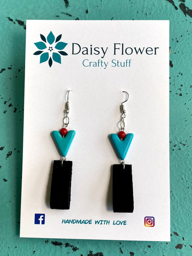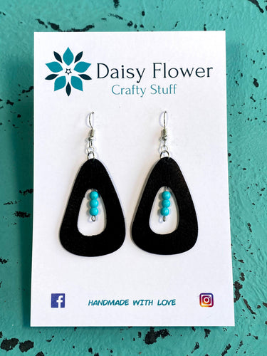 Leather Soft Black w/Turquoise and Red Bead Earrings
