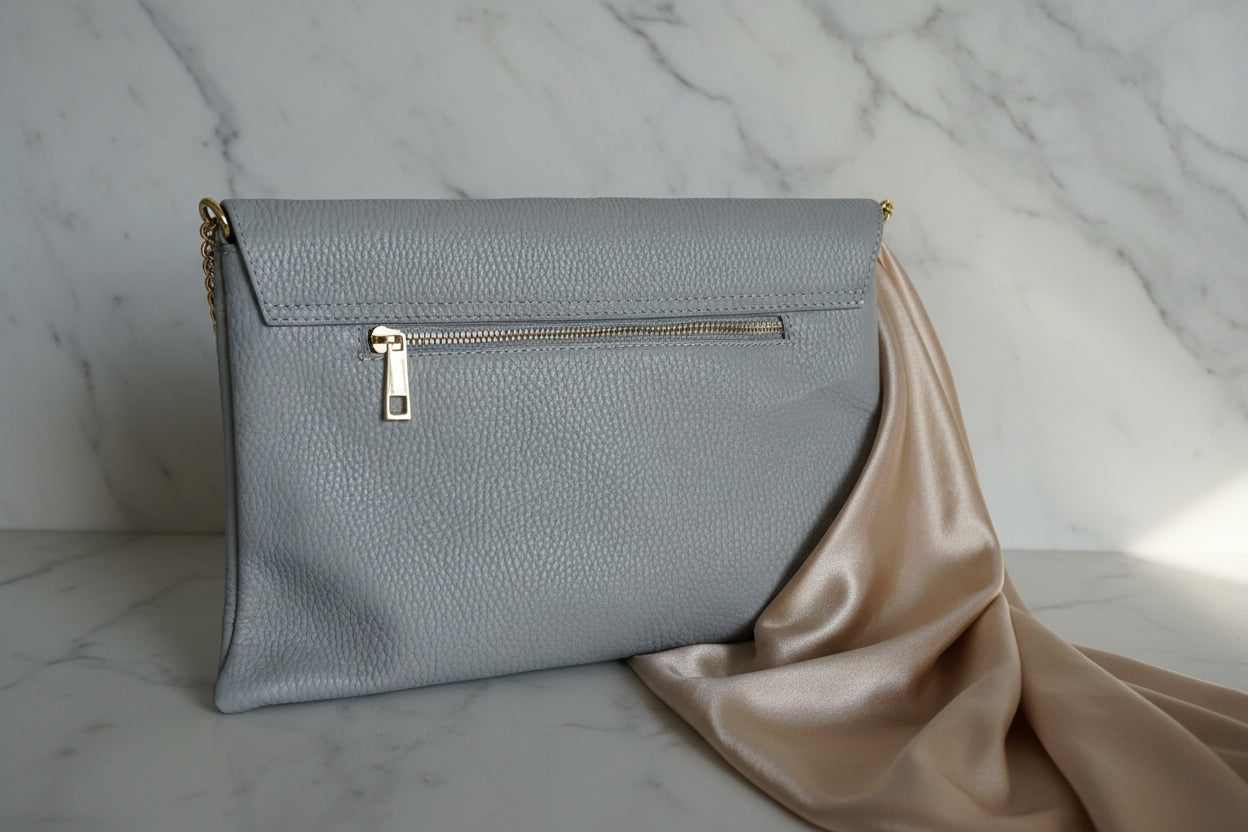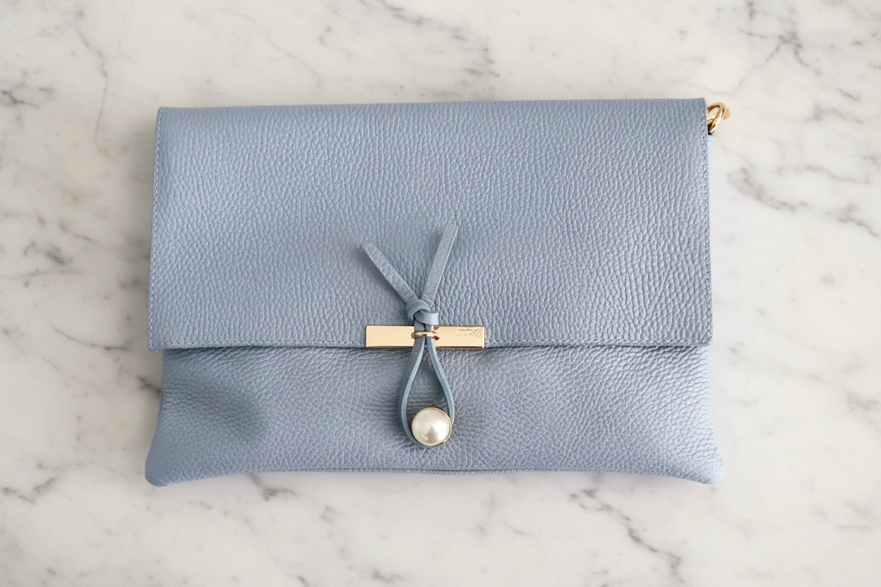Light Blue, shoulder strap, outside zipper pocket, inside zipper pocket, inside light liner